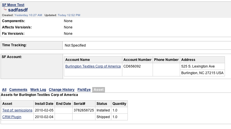 Issue Panels (i.e., a tab on the view issue screen) display all the Asset information associated with issue being viewed. An example of this is: