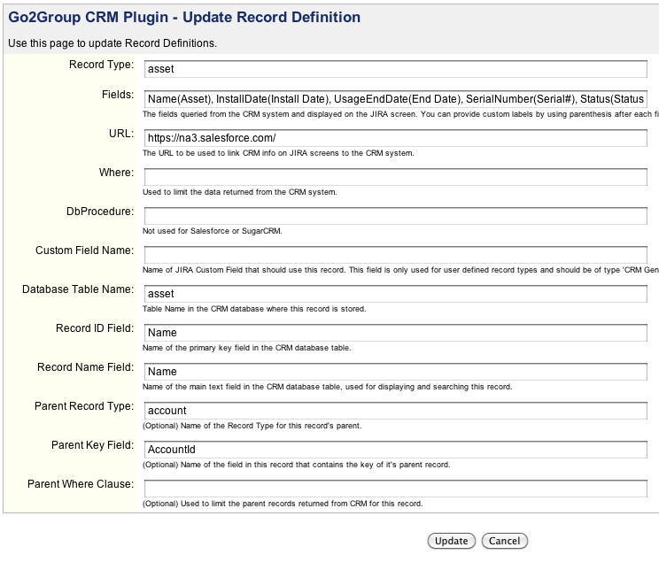 To configure the plugin to display the Asset panel, create a Generic Record Type. This new record definition MUST use the name asset.