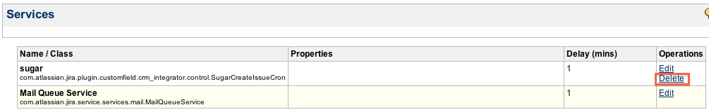 After clicking on ?Services?, delete the CreateIssueCron service:
