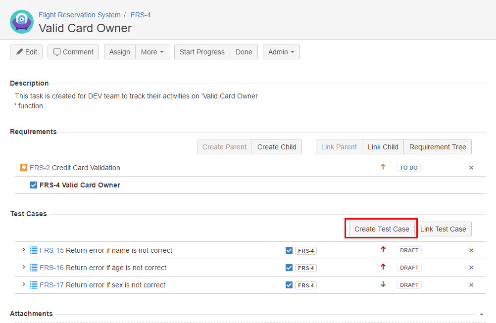Create New Test Case from Requirement