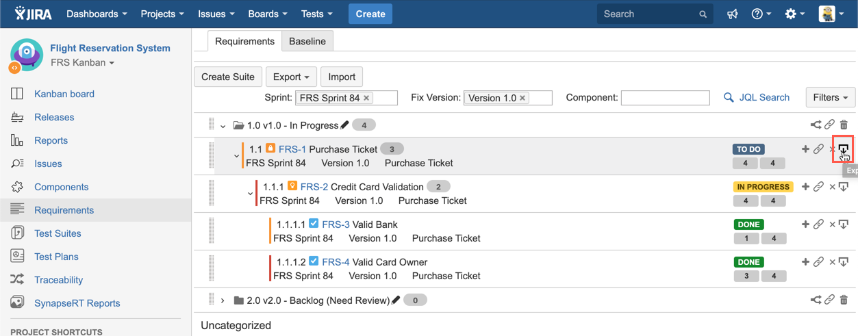 - Filter a set of requirements by "Basic Search" or "JQL Search"