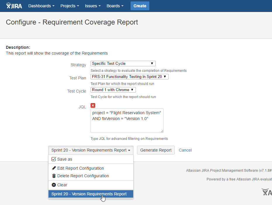 - JQL (Optional)Click "Generate Report" button.