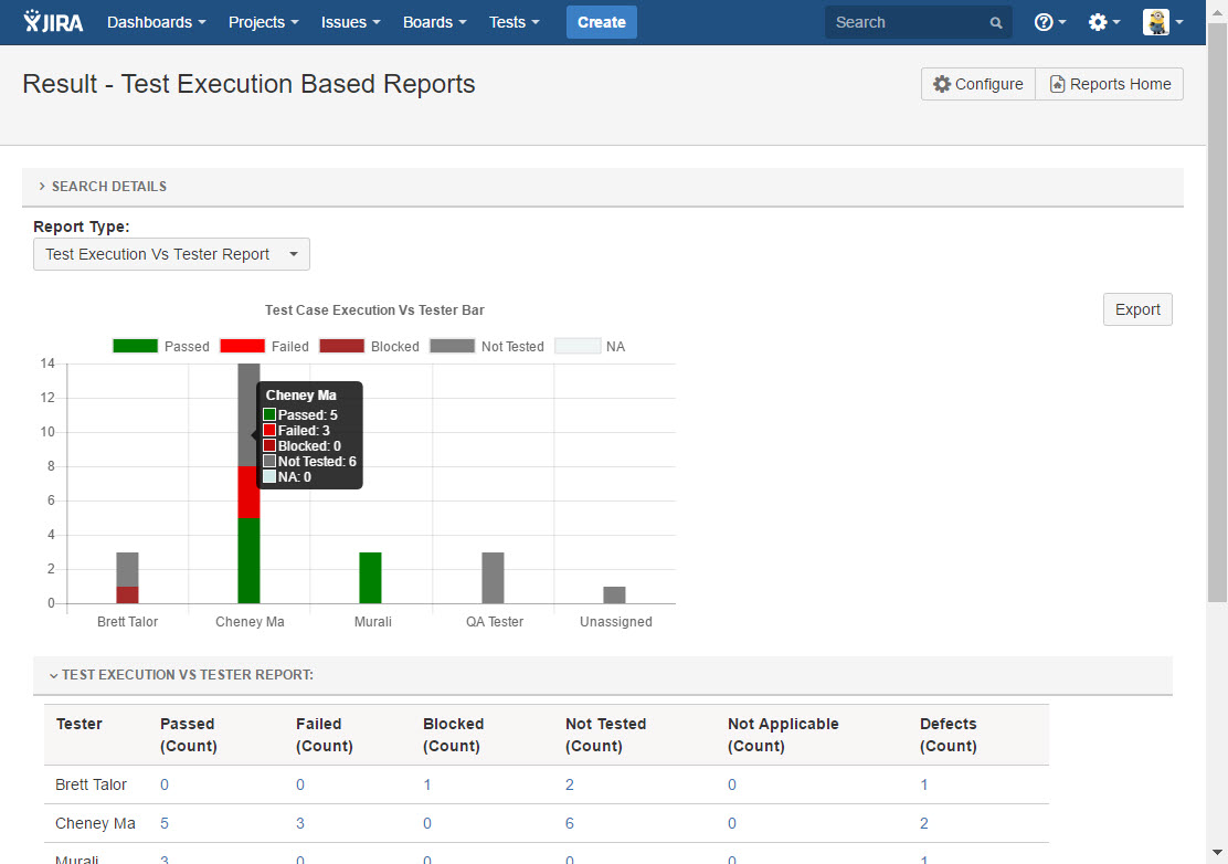 - Specify "Executed between" to generate a period test results for RequirementsYou can switch to other sub report types by selecting them from "Report Type" dropdown