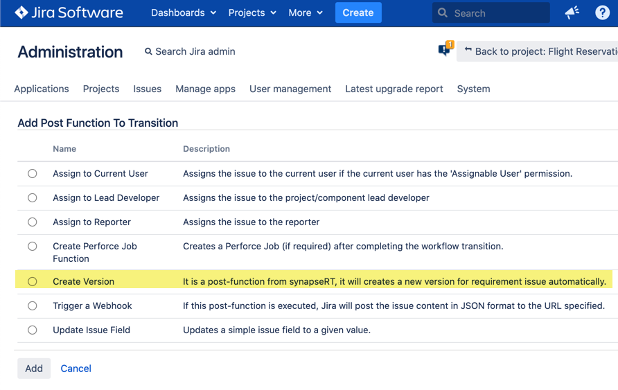 - SYNAPSENG-3741 [Requirement Version]: Introduce a new post function 'Create Version' for workflow transition.
