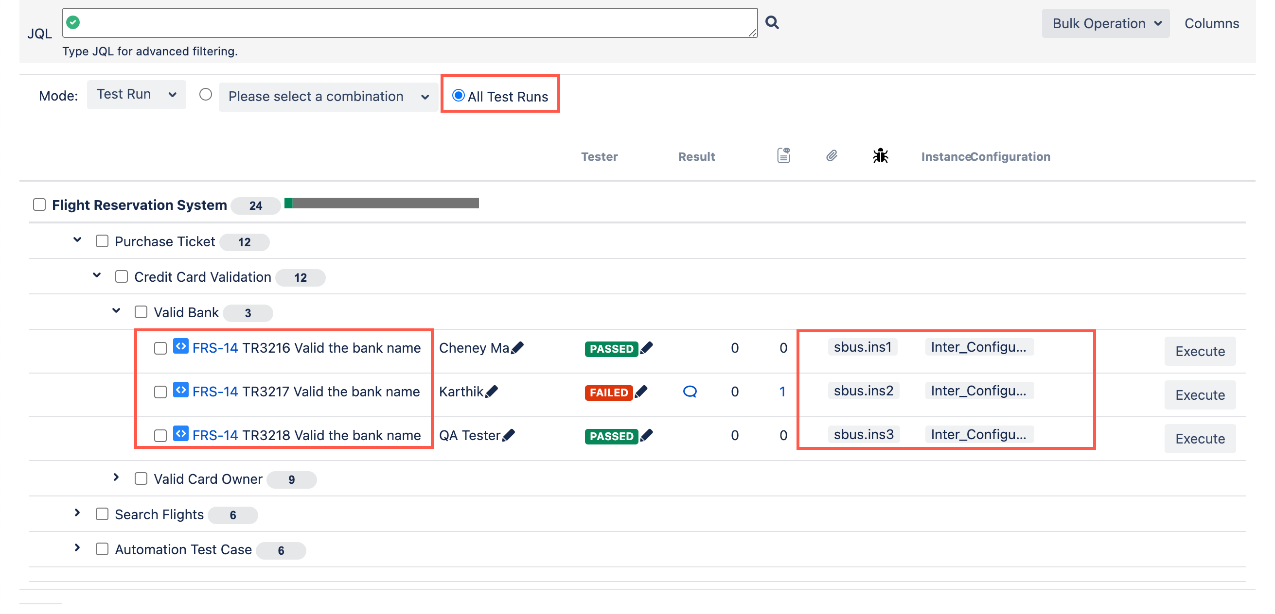 - All Test Runs: it lists all Test Runs created from all combinations.