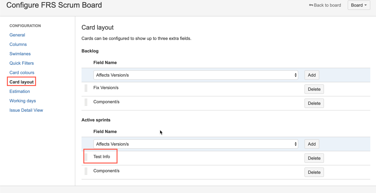 - From "Active sprints", select "Test Info" and add it