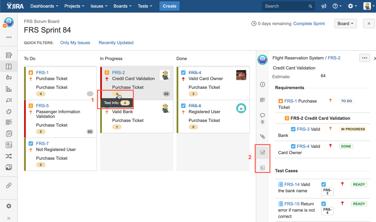 Once "Test Info" is configured in Jira Agile board, you will then see below information in the board.
