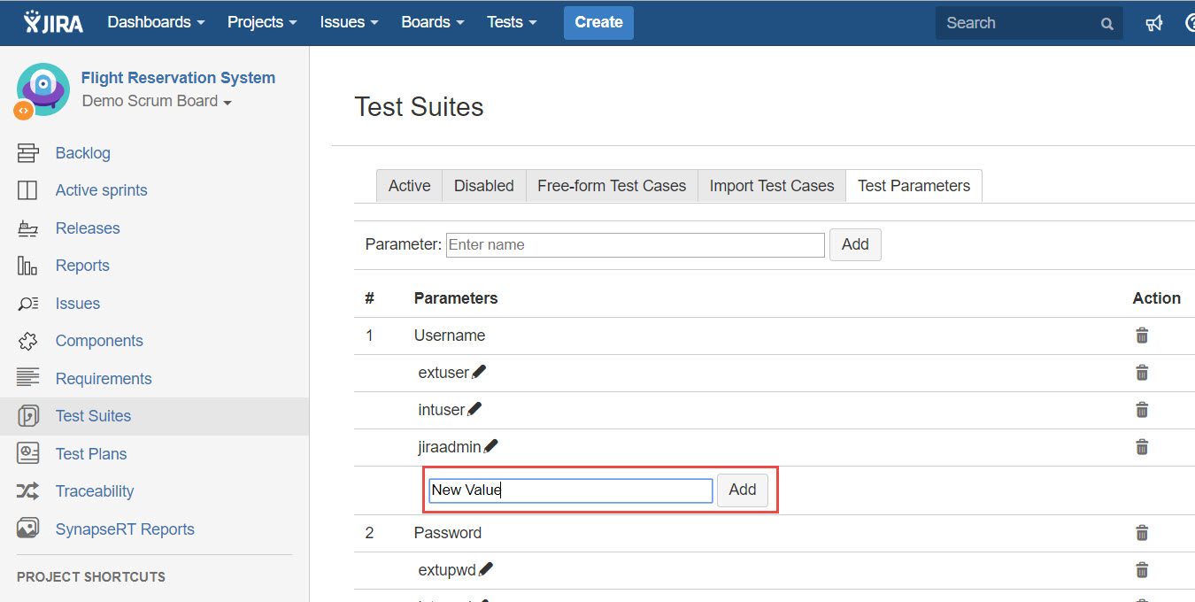 - You can keep going to create multiple values for that particular test parameter