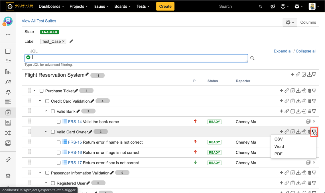 - Click the "Export" icon from any Test Suite