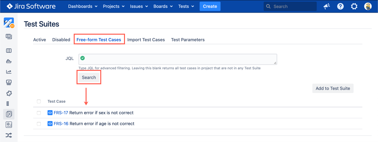 To find Free-form Test Cases, follow these steps: