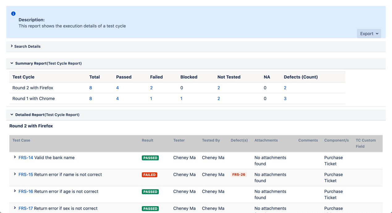 - Click "Test Cycle Report"