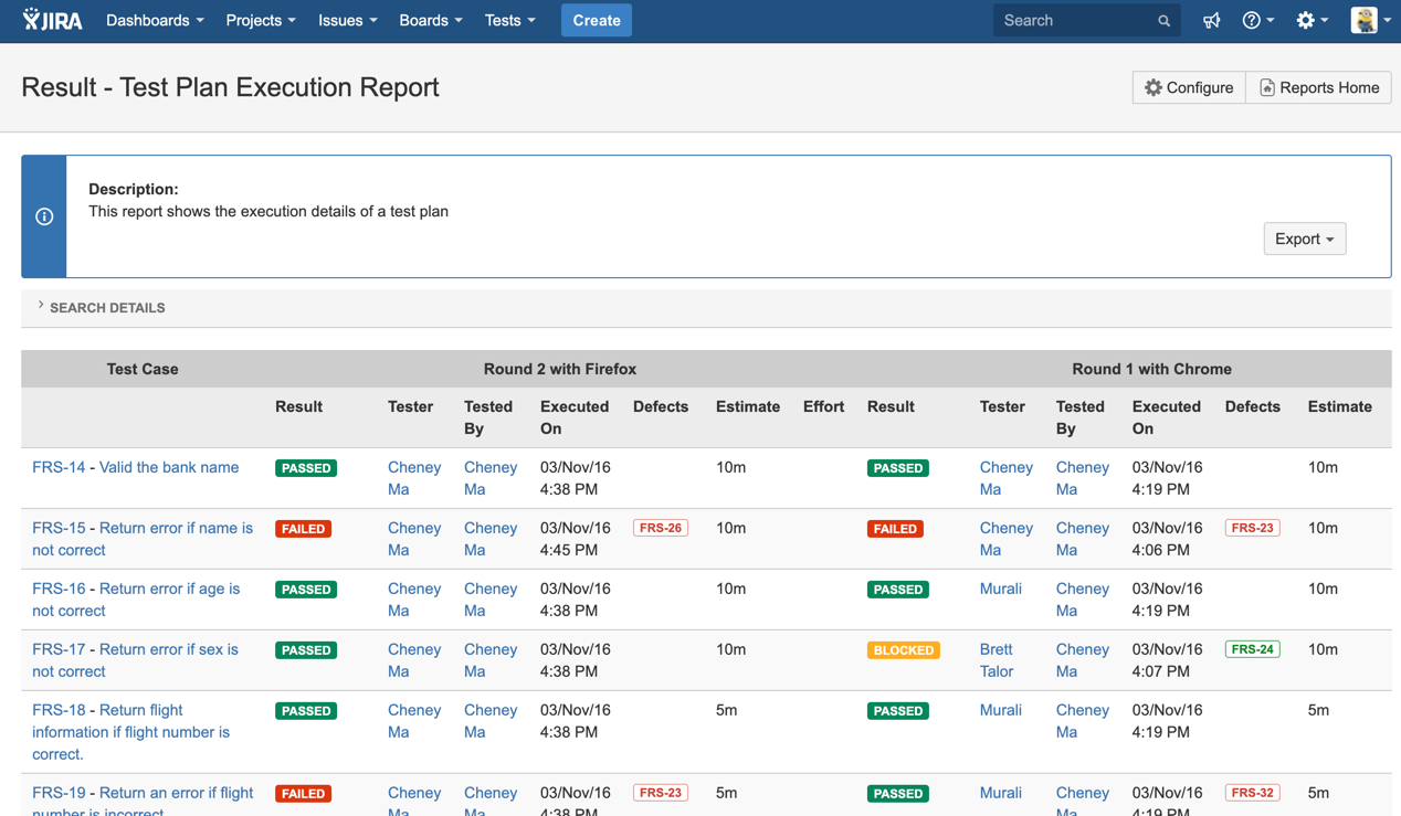 - Click "Test Plan Execution Report"