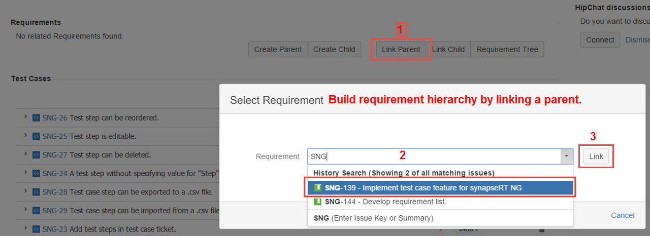 - Click the "Link Parent" button from the Requirements section