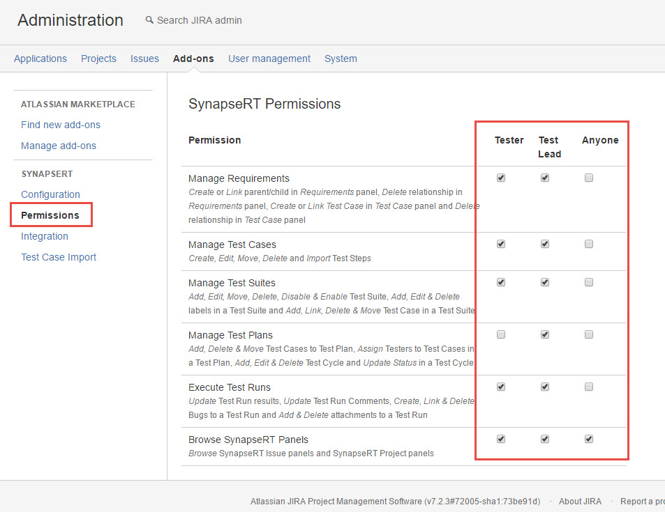 - Test Lead: synapseRT Test Lead role, you can map project role as Test Lead
