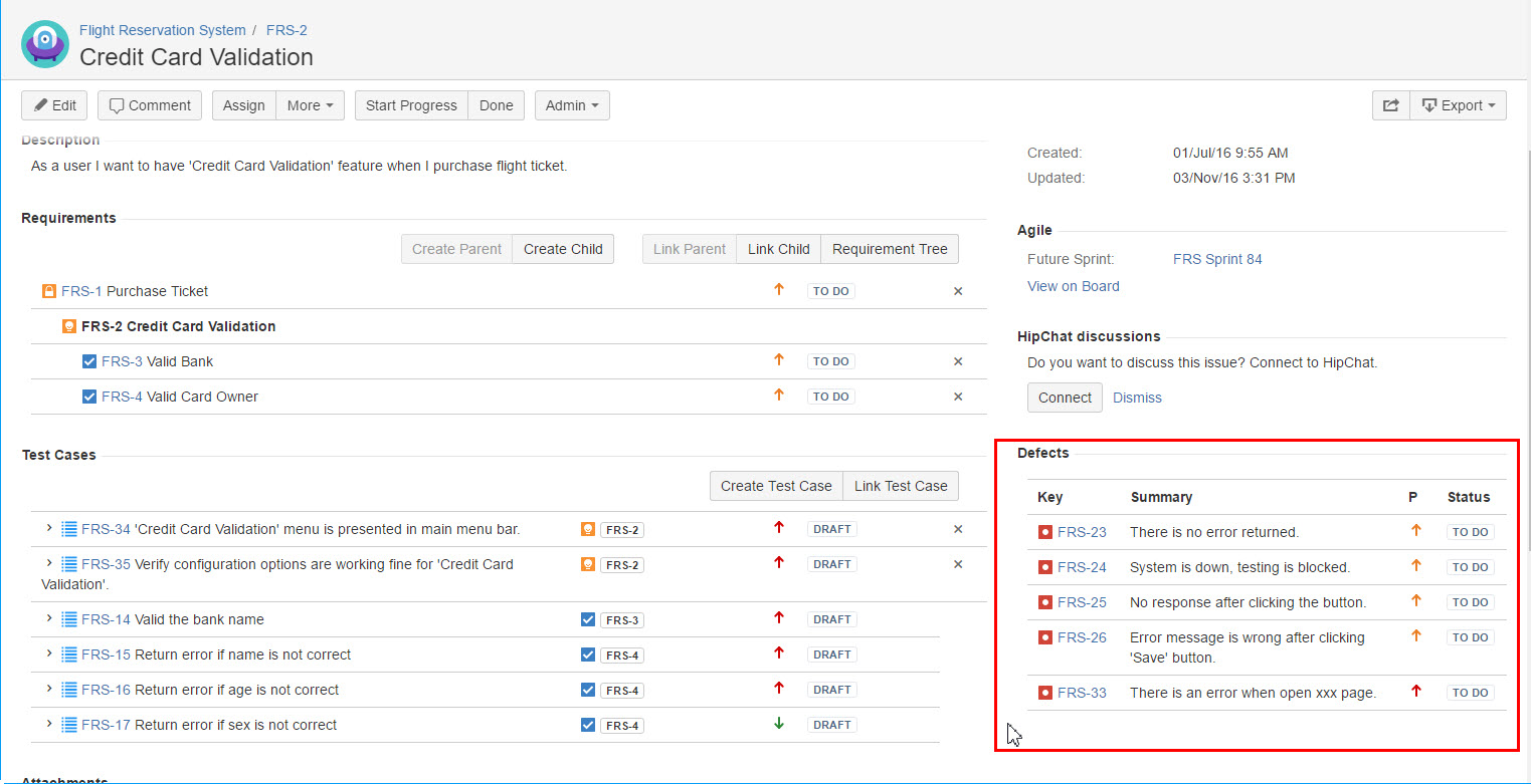 - All defects raised from associated Test Cases will be listed in this section.