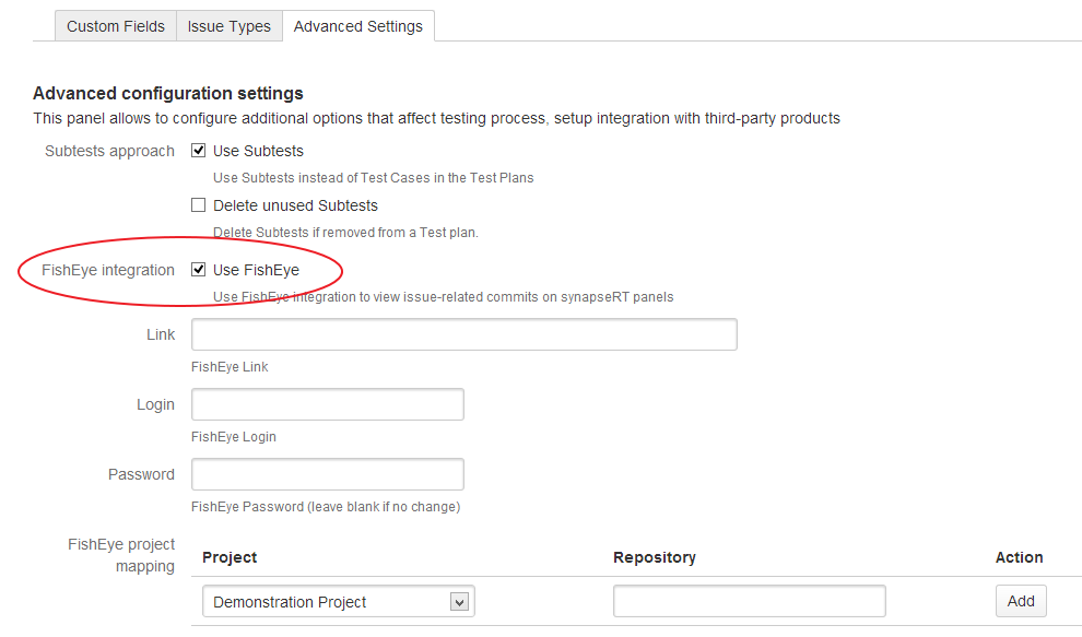 8. Check this option to enable synapseRT Fisheye integration. You can find more information about the configuration of Fisheye integration in the Fisheye section .