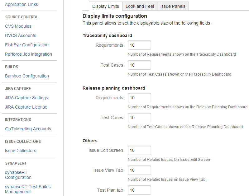 6. Here you can configure the number of issues on a tree level for requirement tree and the number of test cases that will be shown in issue tabs.