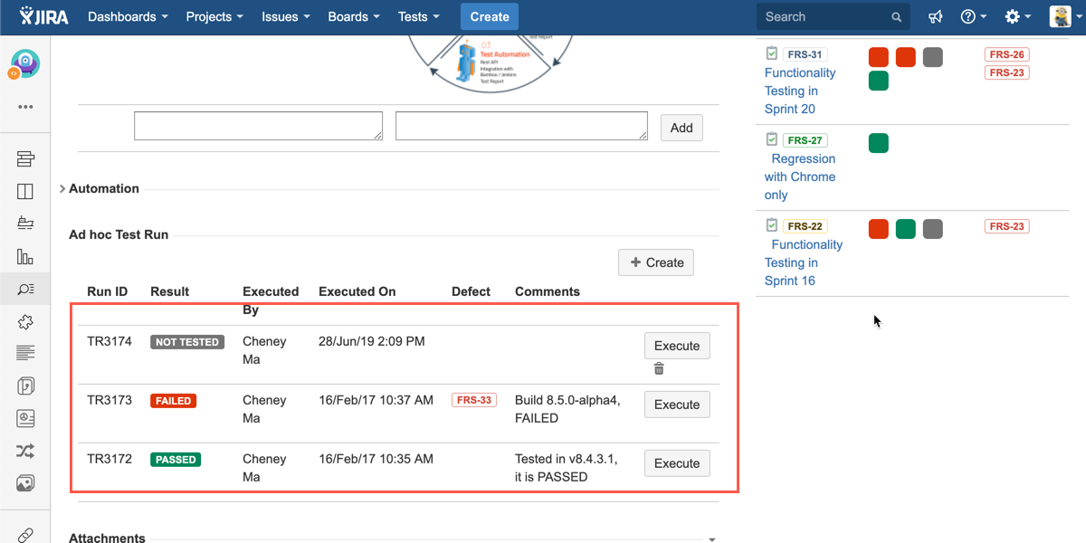 5. Once the test execution is done, the result will be recorded to this Test Case.