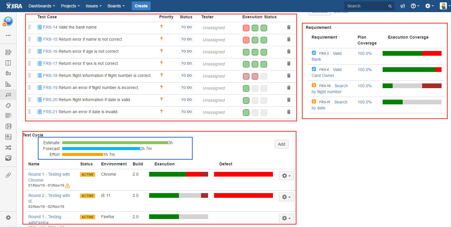 There is also a test process forecasting area to tell user how much time is remaining/have spent on in this particular Test Plan.