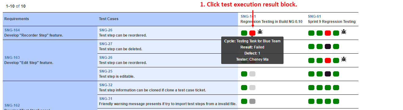 - SYNAPSENG-544 Colored blocks will be messed up in traceability matrix when we scroll to check more test results.