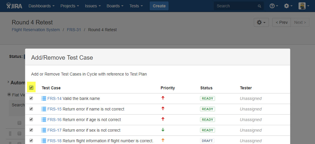 Add 'Select All' option when user adjust Test Cases from a Test Cycle