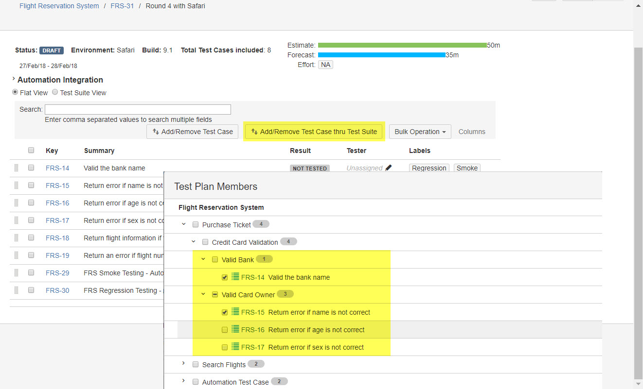 Introduced an additional view mode 'Test Suite View', let the user adjust test cases in test cycle from test suite (tree view).