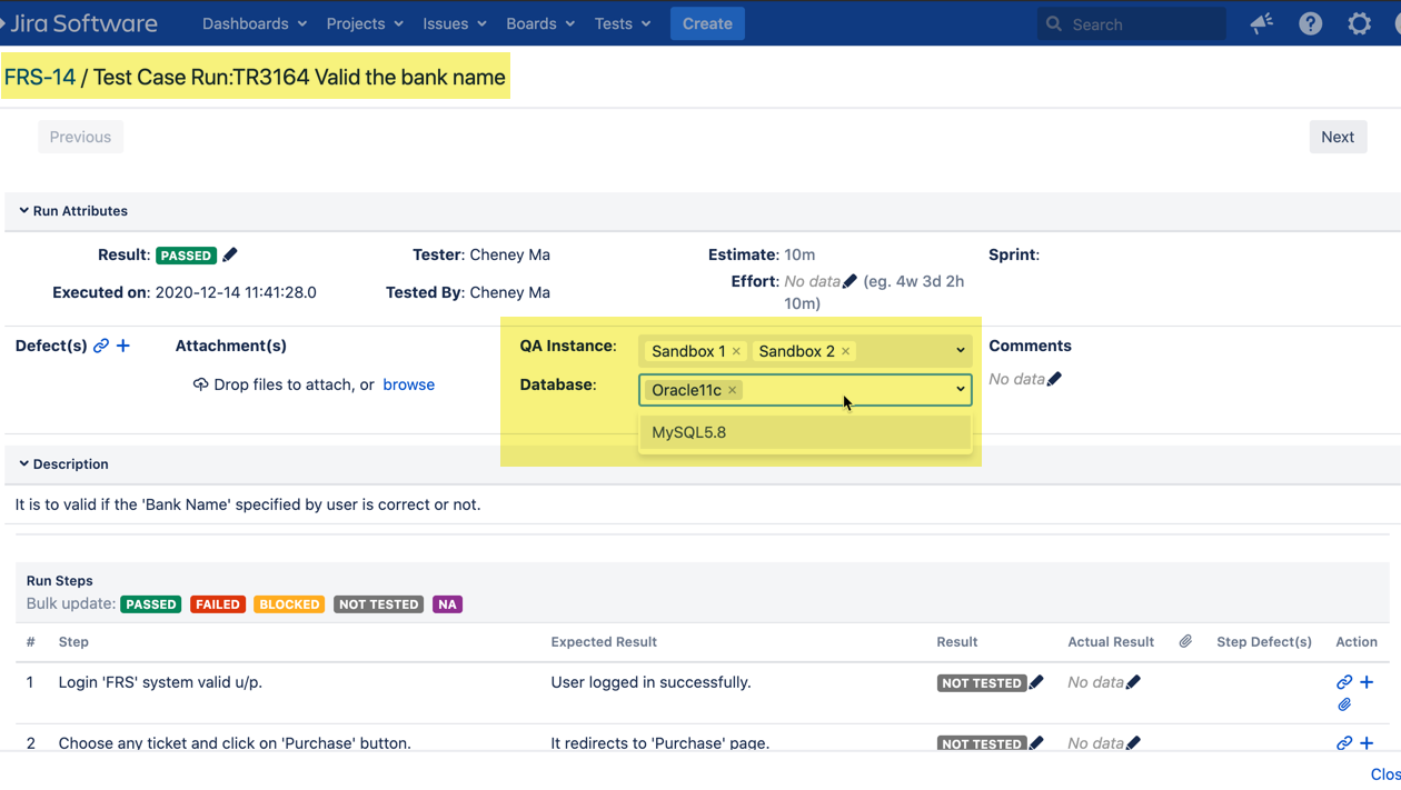 Defining Additional Fields for Test Case Execution