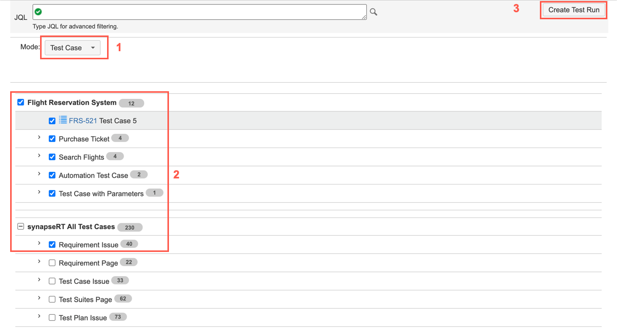 既定では、計画されたテスト ケースはすべて、そこから作成された対応するテスト実行を含めずにテスト サイクルに読み込まれます。本来、テスト実行は '実行属性' の組み合わせの割り当てと共に手動で作成されます。つまり、ユーザーはテスト ケースから複数のテスト実行を異なる '構成' や 'プラットフォーム' に対して作成できます。多数の '構成' や 'プラットフォーム' に対してテスト ケースのセットを実行したいユーザーに最適です。