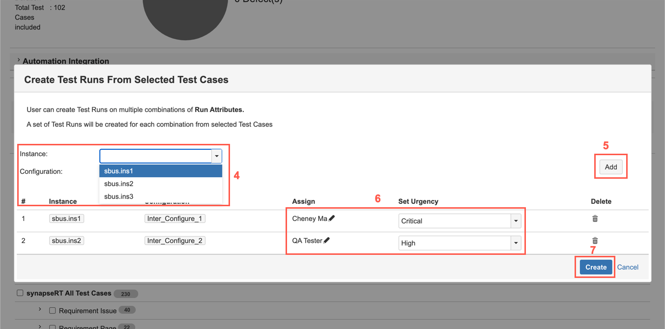 2.5 : [作成 (Create)] ボタンをクリックし、各組み合わせについて対応するテスト実行が作成されるのを待ちます。