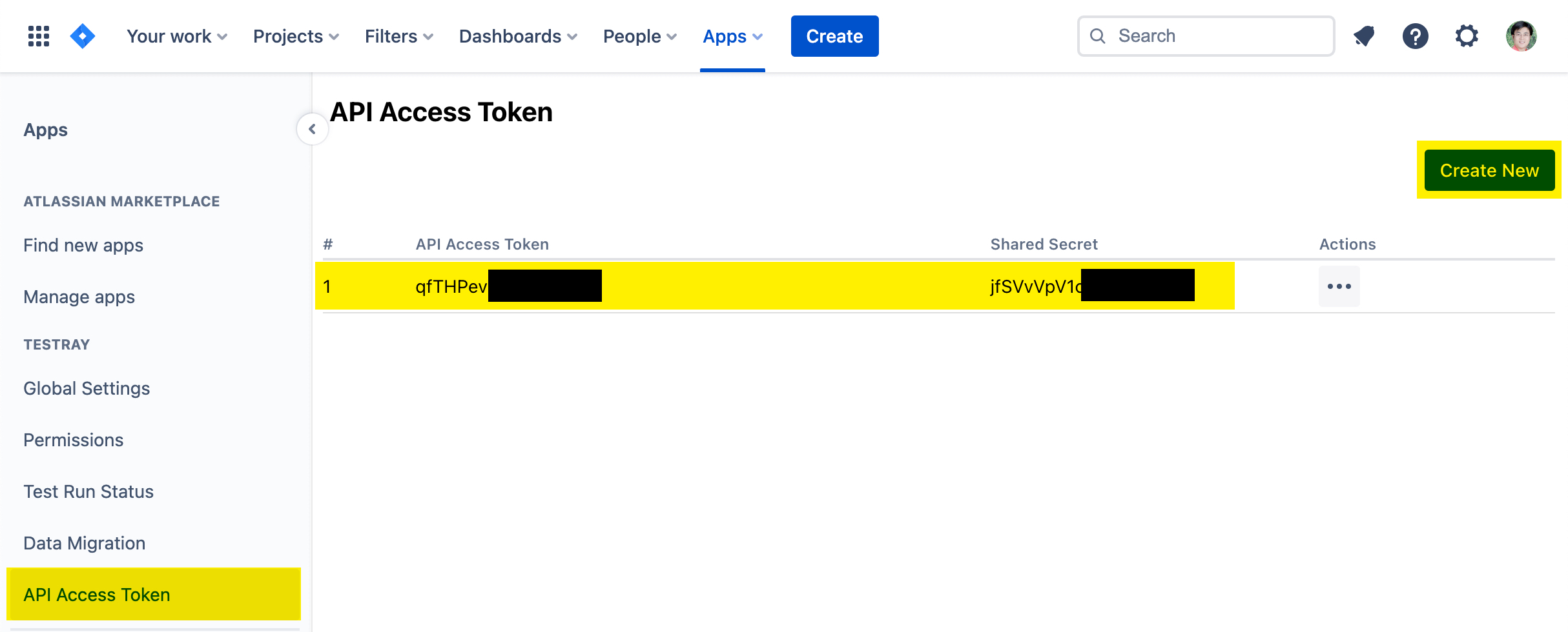 To generate an API access token, please launch page: Settings->Apps->TESTRAY->API Access Token, then click on 'Create New' button.