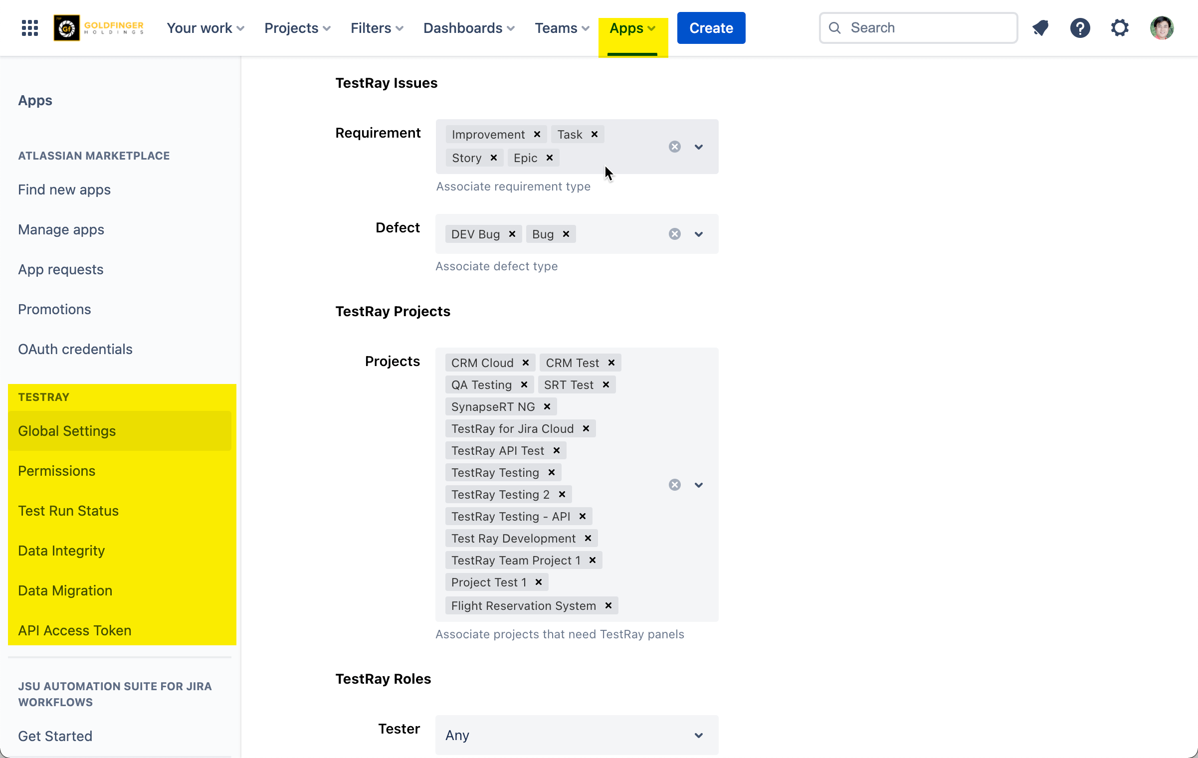 TestRay system configuration can be found at: Jira Settings->Apps->TESTRAY.