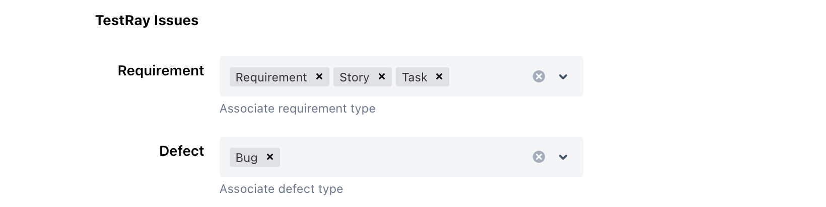 You are allowed to map other issue types to 'Requirement' and 'Defect' issue types. Once the mapping is done, the mapped issue types will get the extensions from TestRay.