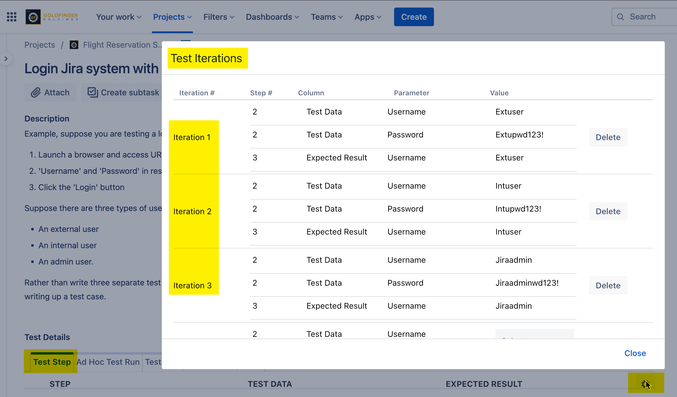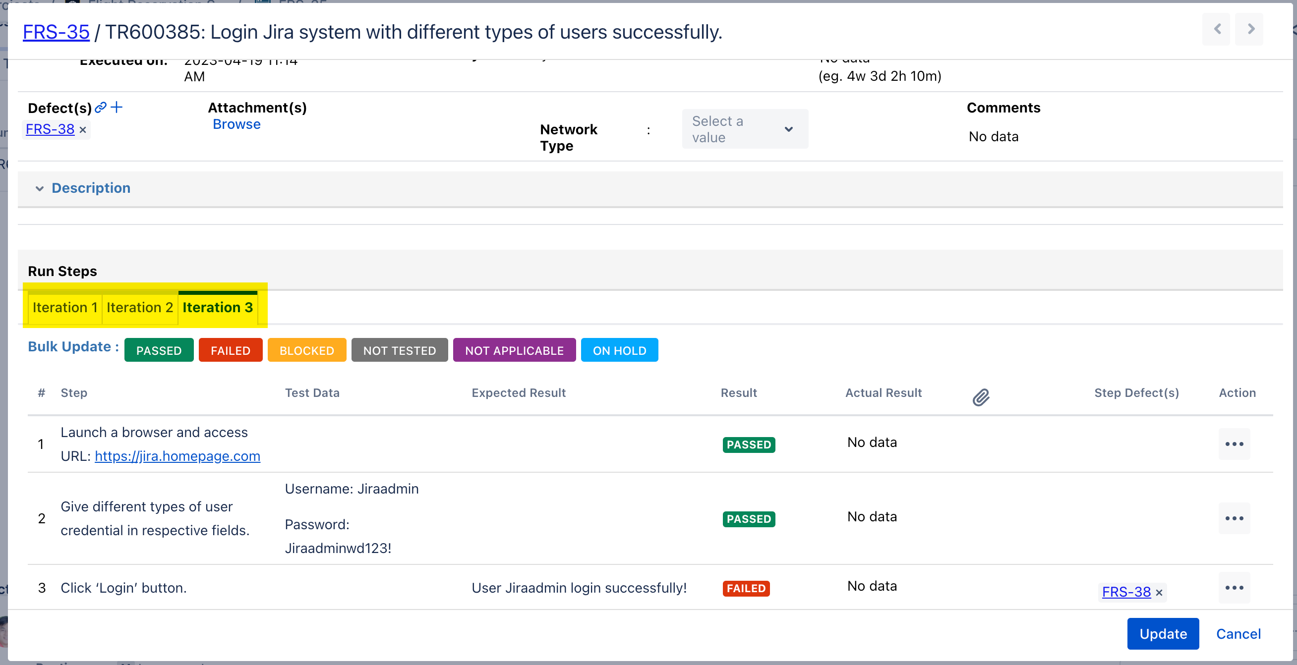 For example, suppose you are testing a login operation for a Jira website. Your steps might be as follows:
