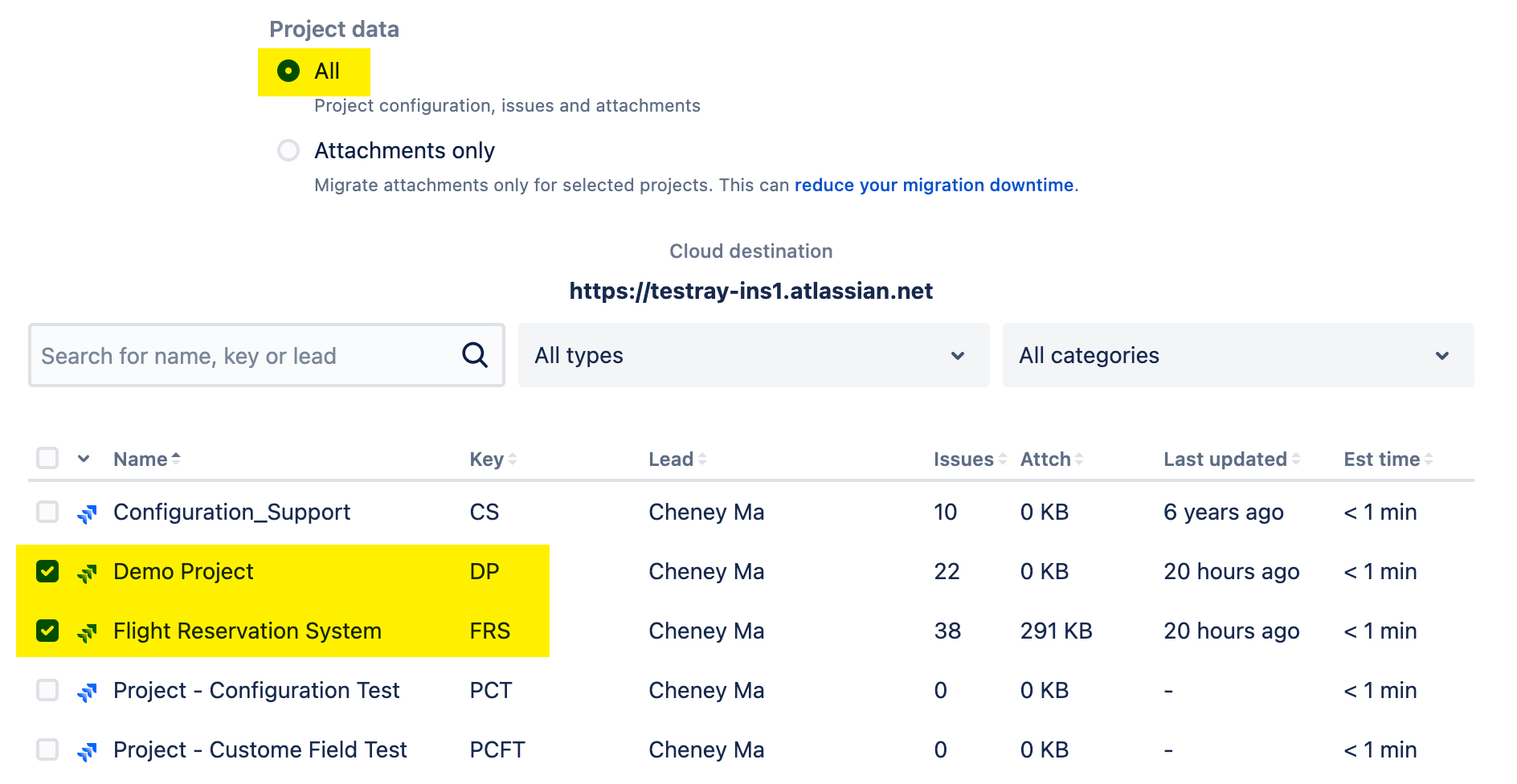 TestRay Projects: select projects those are migrated from Jira Server/DC in Phase 1, 3.2