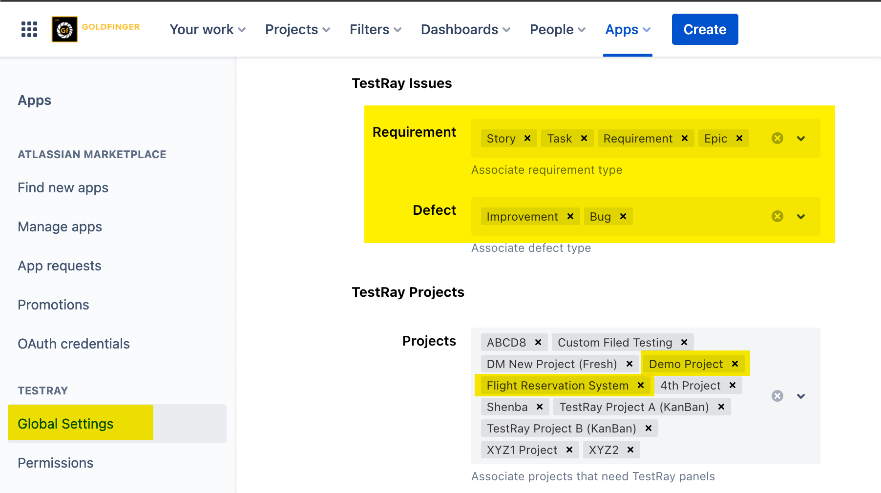 3.2: Projects: Select all intended projects with TestRay app enabled: