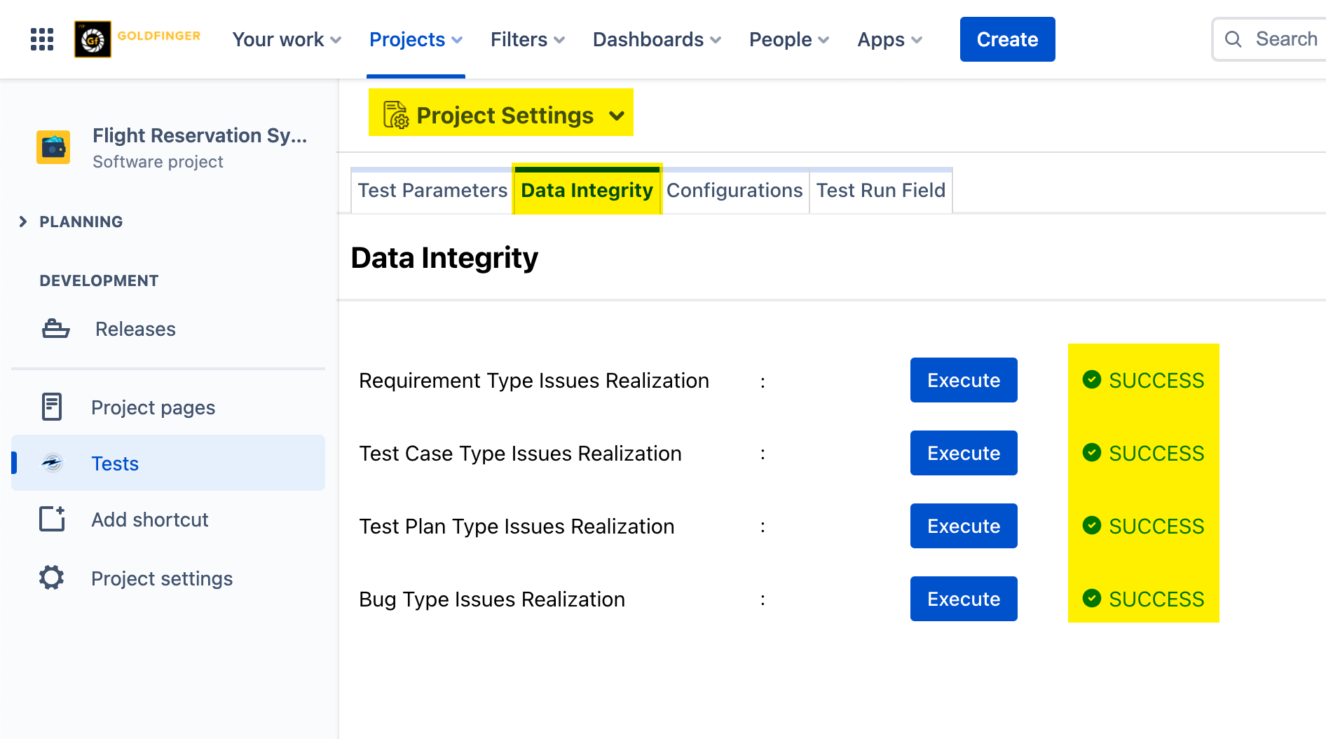 2. Execute 'Data Integrity' check on ALL projects those are migrated
