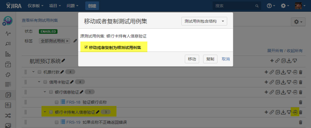 - 从不同的测试用例集中“移动或复制”/“导出”多个测试用例到其它测试用例集