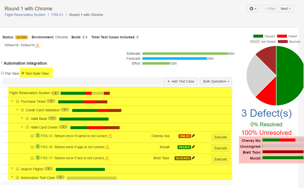 Progress bars to indicate the test results from different assignee (Tester)