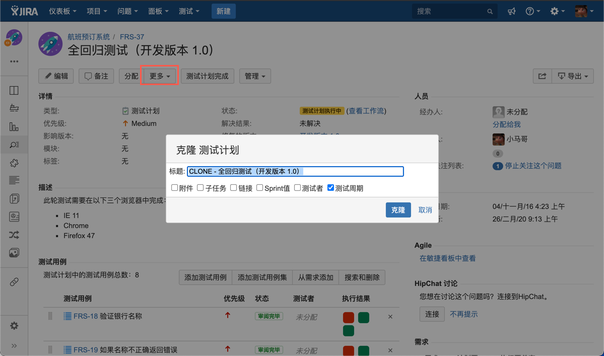 - 在弹出的“克隆测试用例对话框空,指定一个新的测试计划标题。